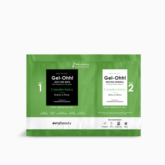 Soothe skin and de-stress senses with our ultra-hydrating Cannabis Sativa Gel-Ohh! This non-intoxicating jelly pedicure delivers an intense dose of moisture to help calm skin and bring relaxation.